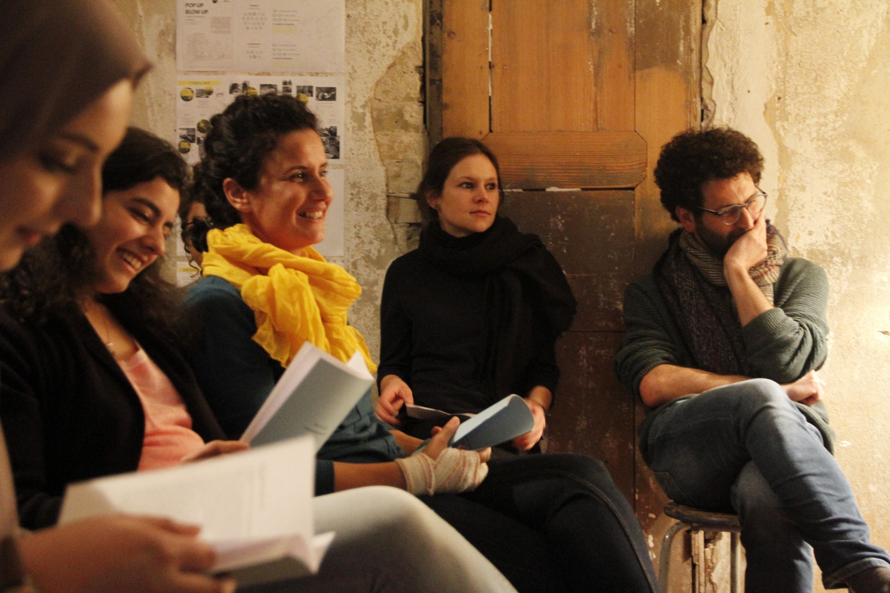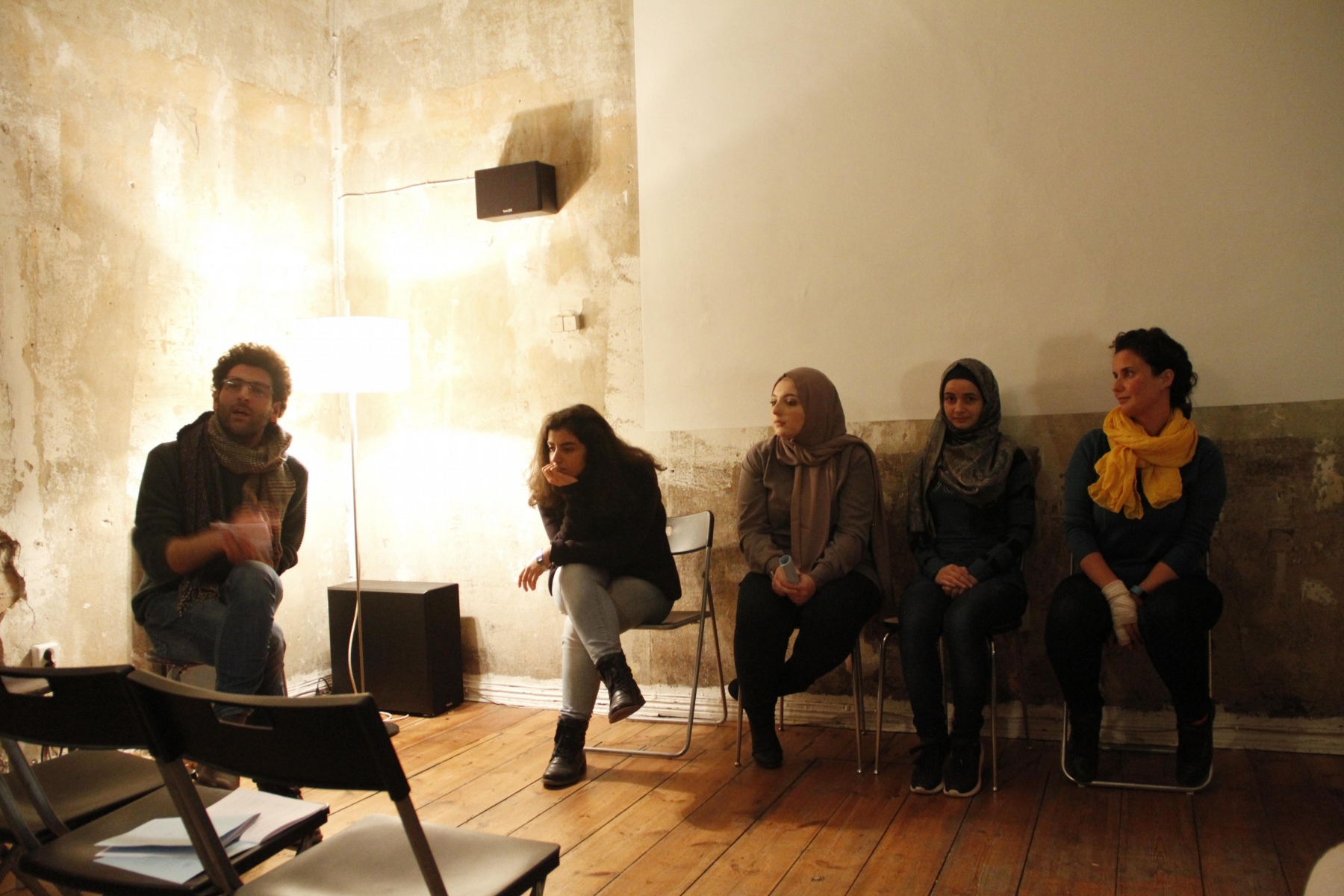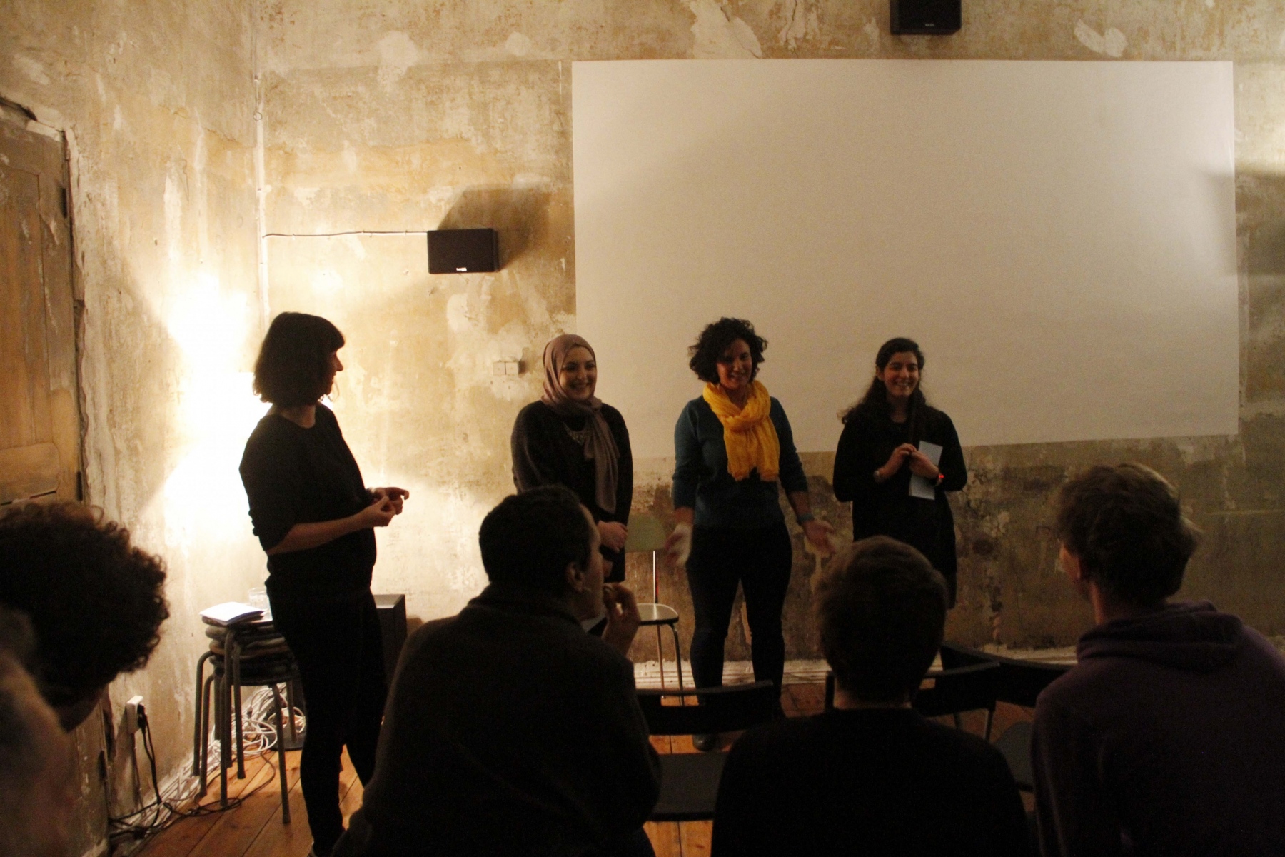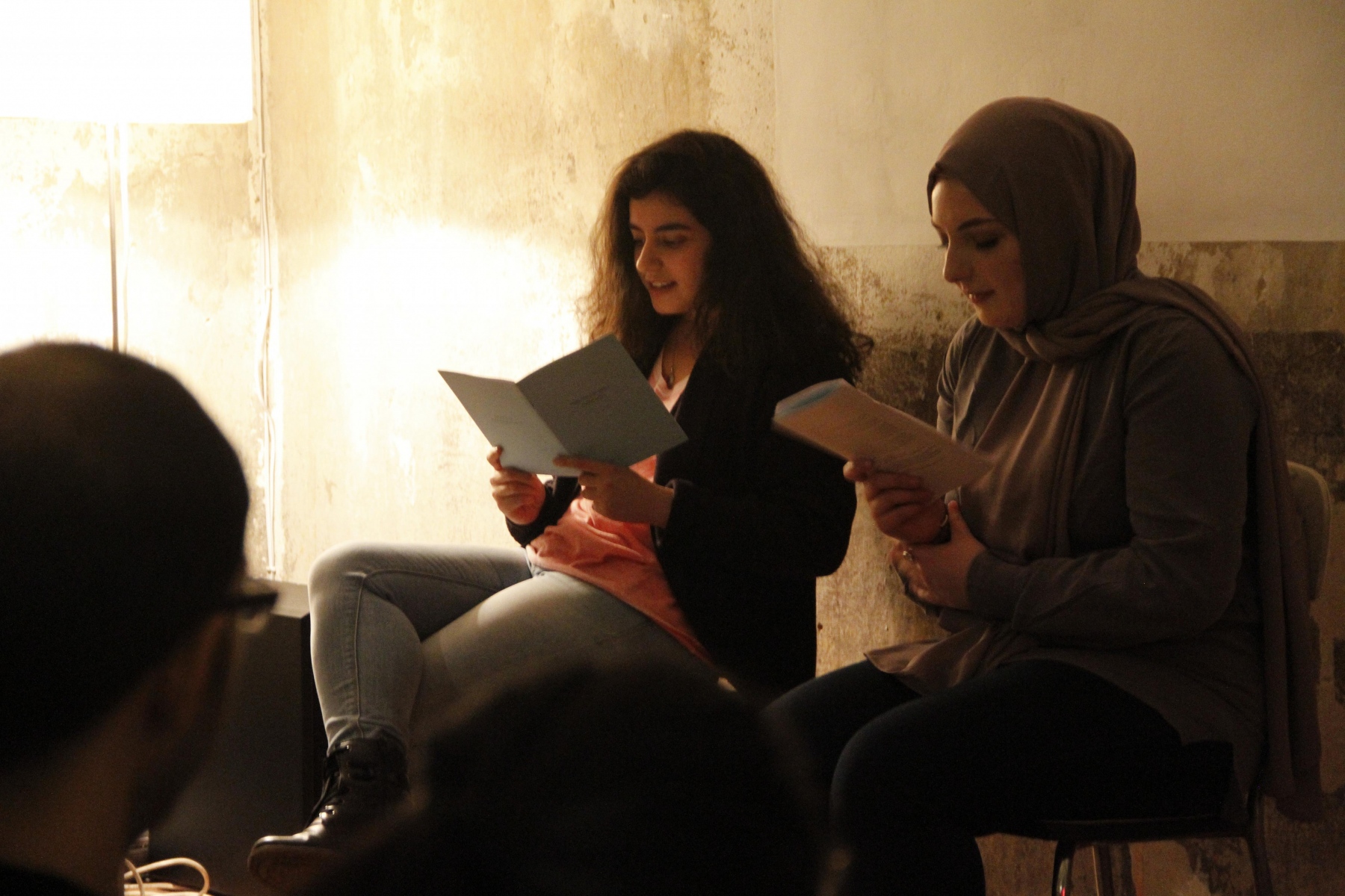 Auf mehreren Leseabenden wurden die in den Workshops angefertigten Texte anschließend an verschiedenen Orten in Berlin wieder in die Gesellschaft hereingetragen. Es entstand eine Plattform, auf der die Frauen die aufgeschriebenen Erfahrungen und Gedanken mit der Berliner Gesellschaft zu teilen und darüber in Dialog zu treten konnten. Gleichzeitig wurde Interessierten ermöglicht, sich Themen wie Flucht oder Heimat über einen persönlichen Zugang neu zu nähern und darüber ins Gespräch zu kommen. Musikalisch begleitete die Abende der Musiker Daisam Jalo auf der Oud, was den Events einen besonderen atmosphärischen Rahmen gab.